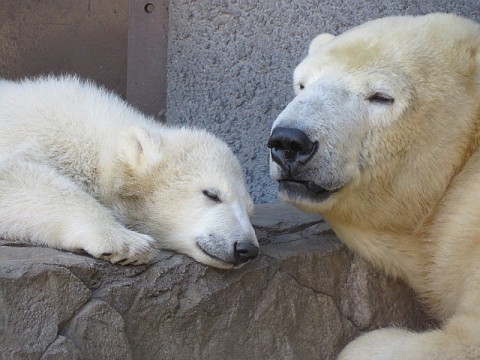 今日お昼頃のララ親子です。大勢のお客さんがじっと待つ中、赤ちゃん...