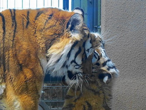 写真は昨日のものです。タツオに甘えてスリスリするアイ。それをお隣...