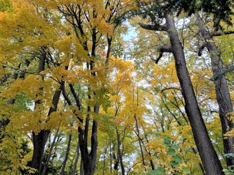 今日も青空の一日で紅葉が綺麗でした。イチョウが黄色く色づいてきた...
