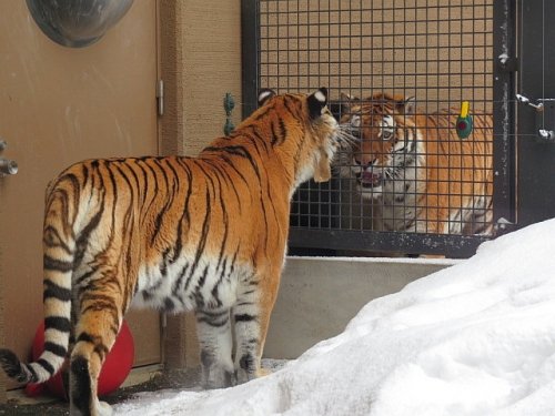 2月1日(日)の『アムールトラのお食事タイム』メイン放飼場でアイ...