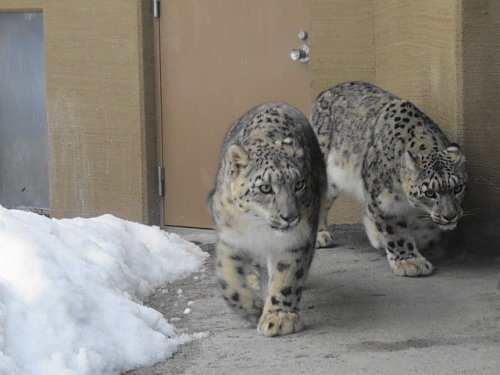 日曜日のユキヒョウのお食事タイム。鶏肉と牛のあばら骨が用意された...