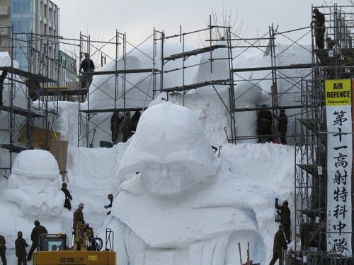 大まかな形ができてきました。大通4丁目STV広場の大雪像『雪のス...