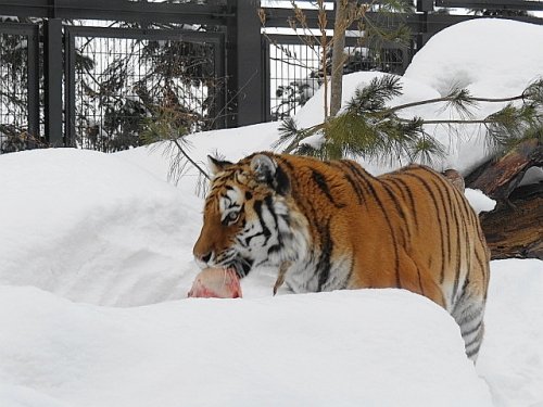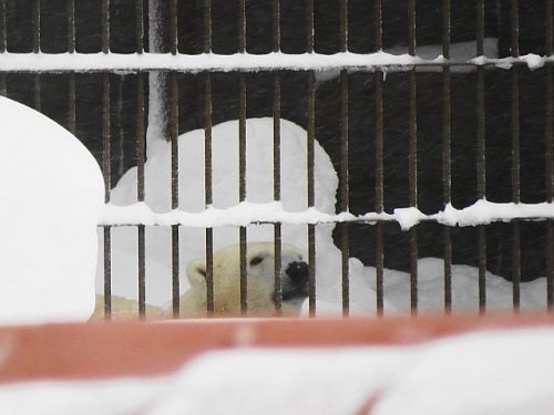 放飼場は積雪で歩く場所も限られているので室内にいる時間が長かった...