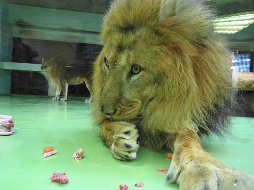 今日のライオンのお食事タイムは鶏が4羽。ティモンは1羽をいつもど...