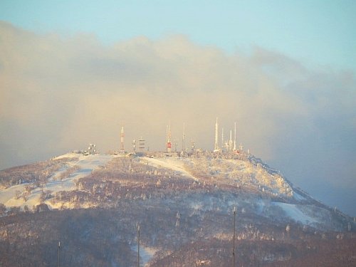 朝日を浴びる手稲山山頂です。今朝7時の札幌の気温は-5.2℃。冷...