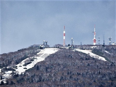 頂上付近がうっすらと白く。平年より1日早く、去年より2日遅い初冠...