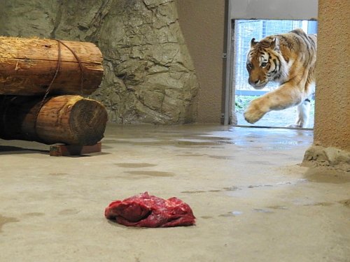 11月30日のアムールトラのお食事タイム。第一歩を踏み入れるタツ...