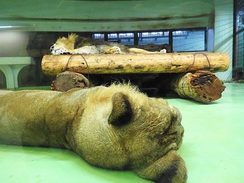 今日は丸太のベッドをリッキーが使い、ティモンは床にころがっていま...