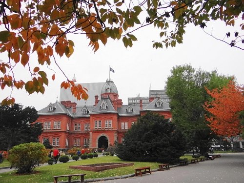 紅葉が見ごろの道庁赤レンガ庁舎前。海外からの観光客の方々も美しい...