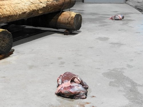 今日の『アムールトラのわくわくタイム』はアイの番でした。馬肉の塊...