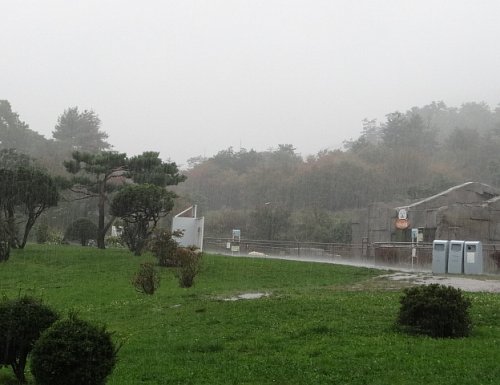 どしゃ降りの夕方