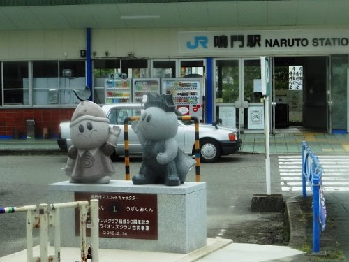 JR鳴門駅前に鳴門市マスコットキャラクターの『うずひめ』と『うず...