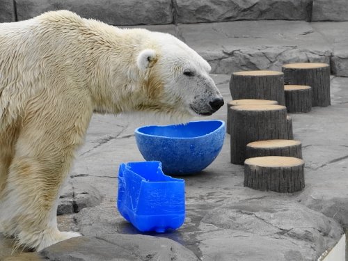 昨日の午後、おもちゃ投入を身を乗り出して待つデナリ。飼育員さんの...