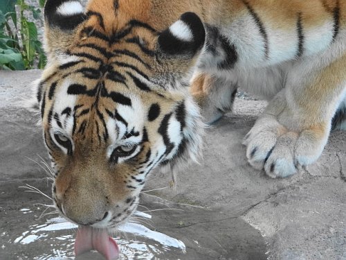 ブチハイエナに担当飼育員さんが小さく切った鶏肉をあげていました。...