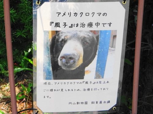 アメリカクロクマの風子は左上あごの腫れを治療中と掲示されていまし...