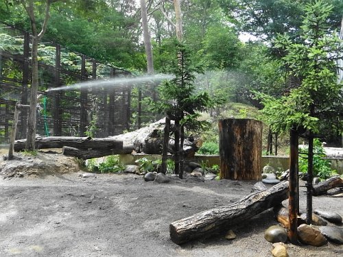 オオカミ放飼場に水がまかれていました。見ているだけで暑さが和らぐ...
