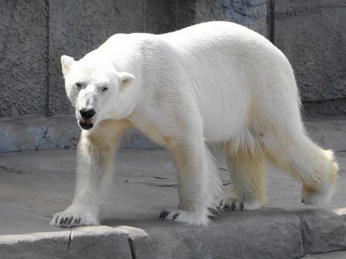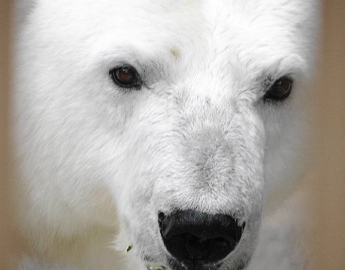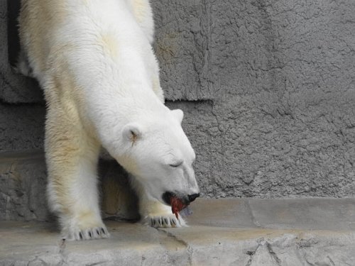放飼場の清掃中、隣室で軽食のララ。「きれいだ~」という感嘆の声が...