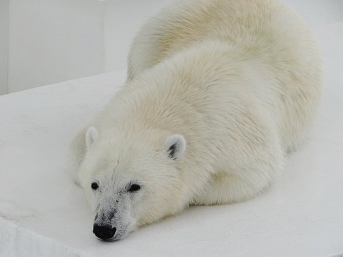 暑いせいか最近は室内で休んでいることが多いホッキョクグマたち。ラ...
