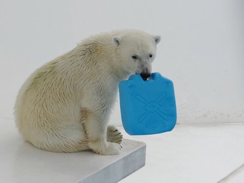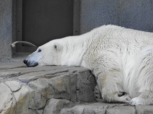 暑かったのでホッキョクグマたちはみんな開放された室内に入って寝て...