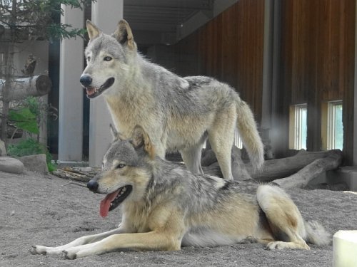 連日暑そうなオオカミたちです。ジェイとユウキ(座っているほう)ル...