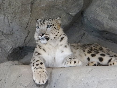 室内展示室で休んでいたシジム。ユキヒョウの放飼場では補修工事があ...