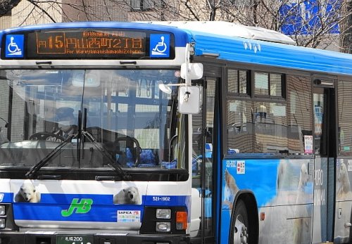 ララとポロロ、マルルの可愛い写真でラッピングされた路線バス(JR...