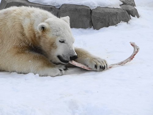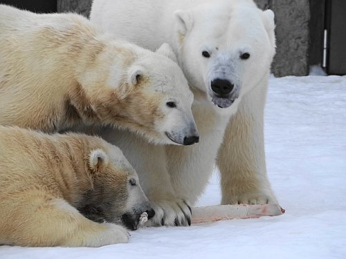 今日の親子はあばら骨をそれぞれもらって齧ったり玩具にしたりしてい...