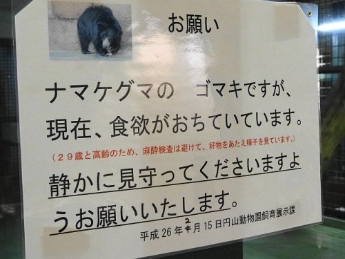 国内でただ一頭のナマケグマであるゴマキが体調を崩しています。横た...