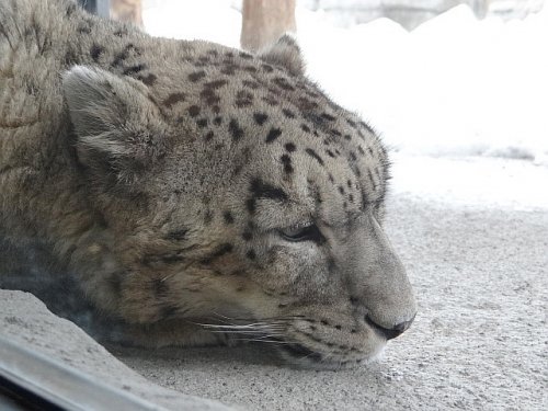 メイン放飼場でうたた寝をしていたアクバル(8歳)お隣のサブ放飼場...
