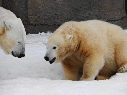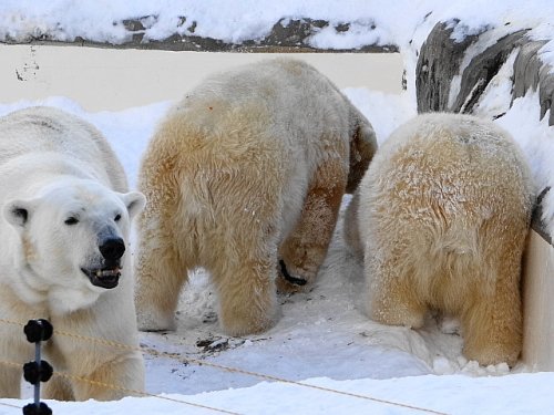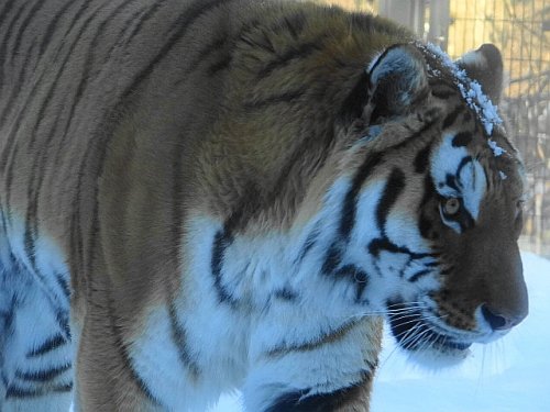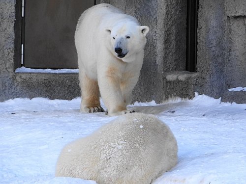頭の上に雪を乗せて歩いていた4日(土)のタツオ。寒帯館の主として...