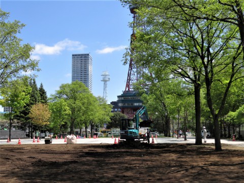 札幌大通公園の2丁目から4丁目は立入禁止となっており、芝生がはが...