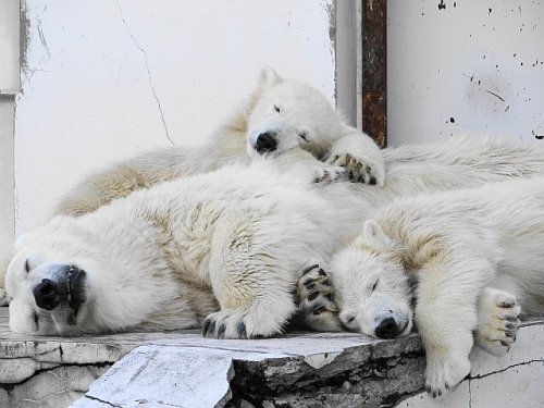 ララに寄り添って幸せそうに眠る子どもたち。上ポロロ・下マルル段差...