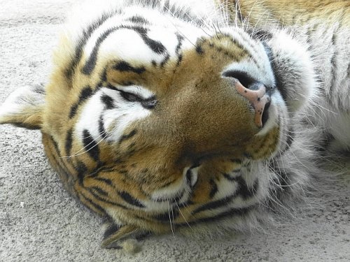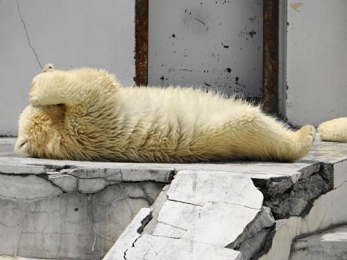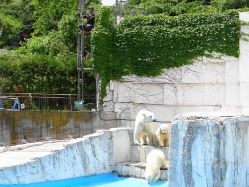 午前中は日陰もたくさんありお昼寝には最適。ガラスのこちら側で人間...