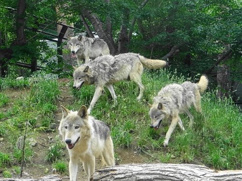 親子4頭の抜け毛のかたまりがたくさん転がっているオオカミ舎。ジェ...