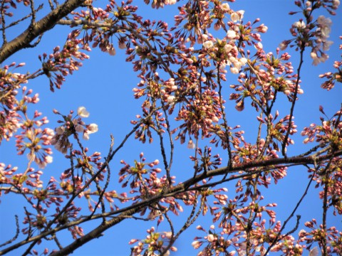 例年、少し遅れて開花する大きな桜の木があります。今日はこんな感じ...