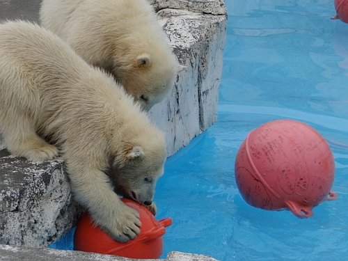 ブイを取りたいアールちゃん。エルちゃんはいつもは横で見ているだけ...