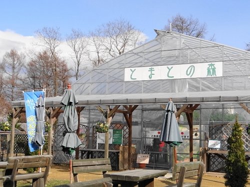 このハウスの中に水耕栽培の大きなトマトの木がある「えこりん村」ち...