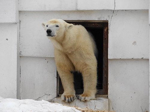 閉園の放送が流れている時間、寒帯館のユキヒョウたちはすでに帰宅し...