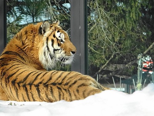 放飼場の積雪も少しずつ減ってきました。周囲の様子を観察しているタ...