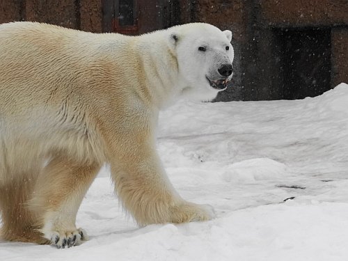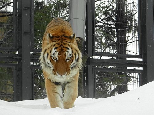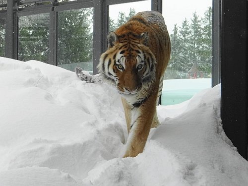 雪の中をお散歩中のタツオ。誰かに気付いたようです。アクリルガラス...