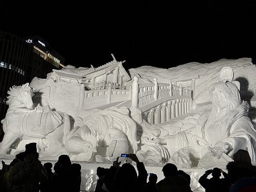大通西4丁目の大雪像の制作現場です。5日からの雪まつりに向けて最...