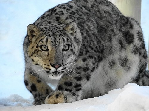 メイン放飼場の中央の高い木に登ったシジム。他のユキヒョウがここま...