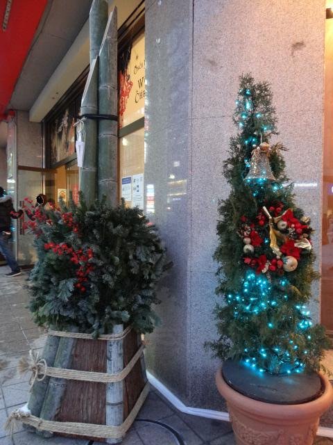 某百貨店の入口。クリスマスツリーと門松が並んでいました。気持ち的...