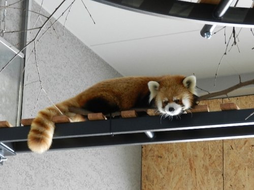 アジアゾーン高山館のレッサーパンダ屋内展示場は、頭上に設けられた...