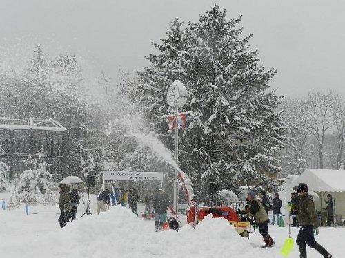 雪がかなり強く降っていて10時からのオープンセレモニーを前に除雪...