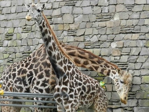 午前中、雨模様だったため屋内に収容されていたキリン一家。外に出た...
