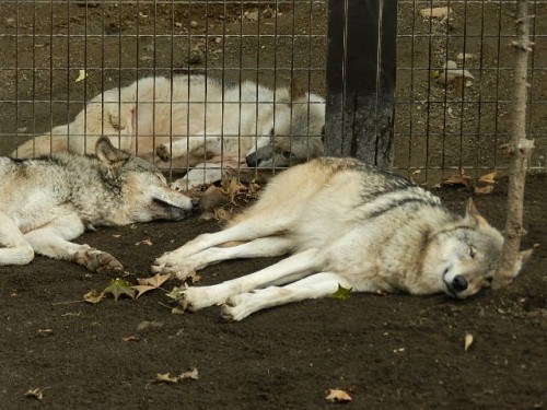 母キナコのそばで休むユウキとショウ金網越しの母と息子たちですが、...