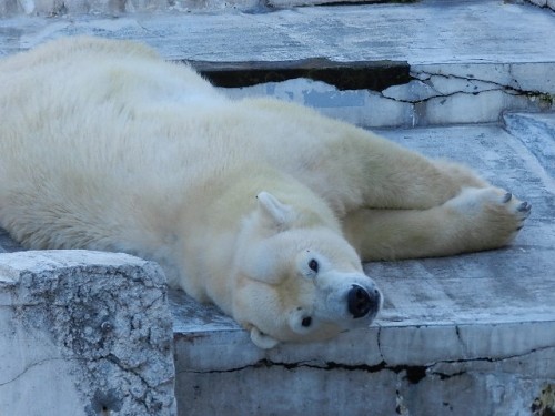 午後2時頃、飼育員さんの姿を探して遠くを見ながら座っていたララ。...