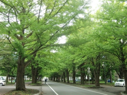いつもこの頃には少し色づき始めている北大構内(北13条)の銀杏並...
