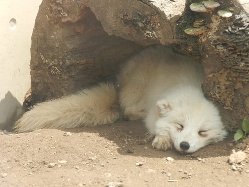 旭山のホッキョクギツネさん。冬は真っ白な雪の中に真っ白な体でまぶ...